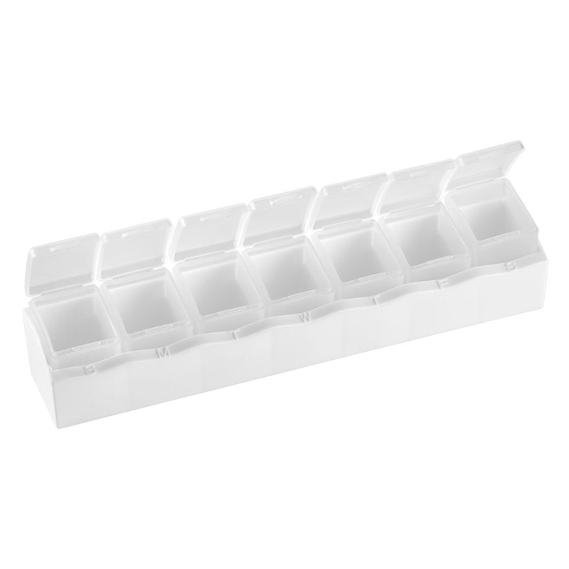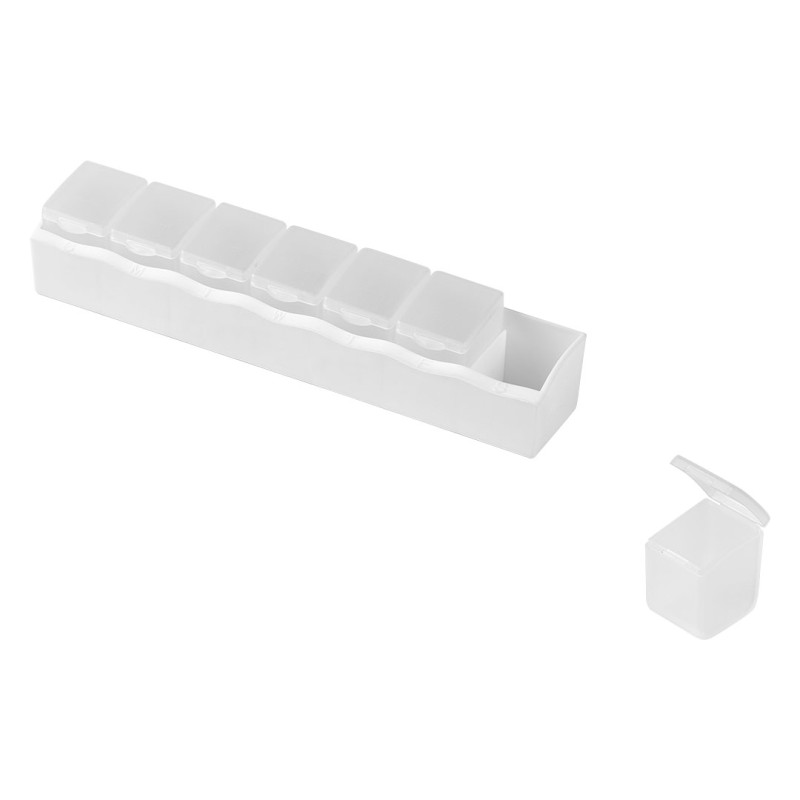 CLINIC je plastična kutijica sa 7 odvojivih odeljaka za organizaciju lekova, vitamina i ostalih suplemenata po danima, dizajnirana da olakša praćenje terapije i pravilno konzumiranje. Pregledan raspored sa jasno označenim danima omogućava lakšu i sigurniju upotrebu, kako kod kuće, na poslu, tako i tokom putovanja. Laka je za korišćenje i praktična za svakodnevnu rutinu, što je čini korisnim i funkcionalnim promotivnim proizvodom za kampanje u zdravstvenom i wellness sektoru.