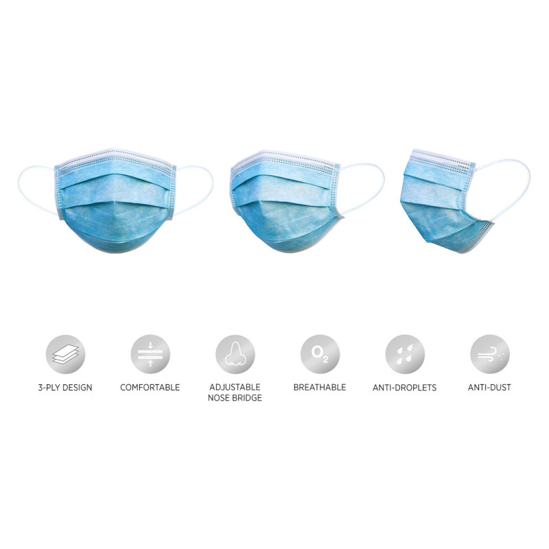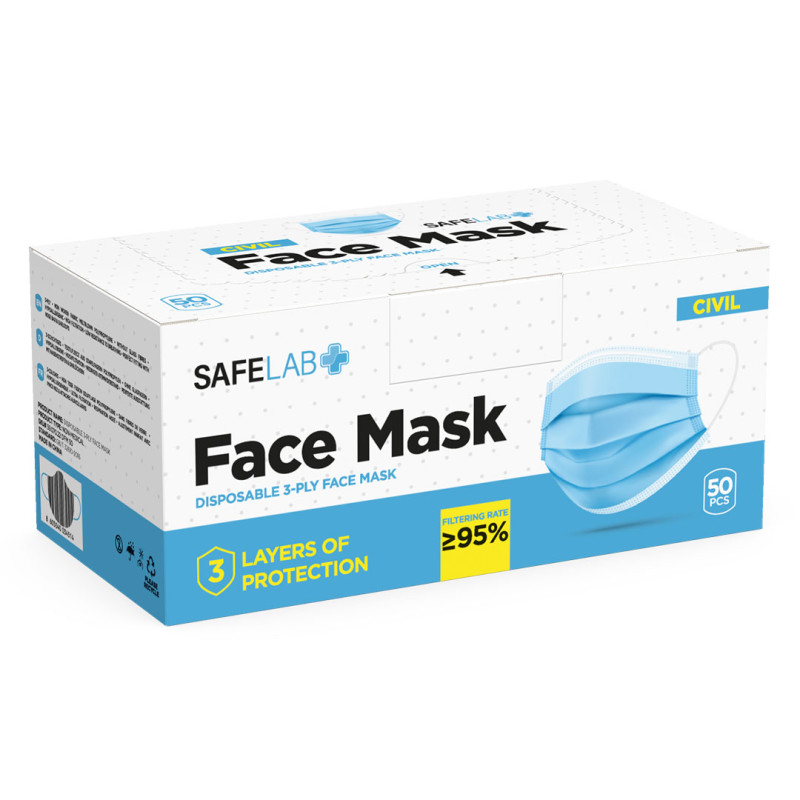 Nemedicinska zaštitna maska • Jednokratna upotreba • Materijal: polipropilen • Pravougaoni oblik sa naborima • Univerzalna veličina za odrasle • Dimenzije: 17,5 × 9,5 cm • Dobra prozračnost • Pogodna za radna i javna okruženja