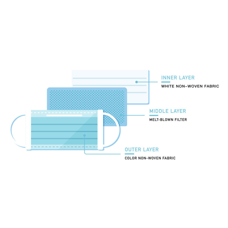 Maska je izrađena od polipropilenskih vlakana, materijala koji omogućava dobar protok vazduha i osnovni komfor tokom nošenja. Standardna pravougaona forma sa naborima omogućava lakše prilagođavanje licu, kao i efikasno pokrivanje nosa i usta. Dimenzije maske su 17,5 × 9,5 cm, što odgovara univerzalnoj veličini za odrasle korisnike.