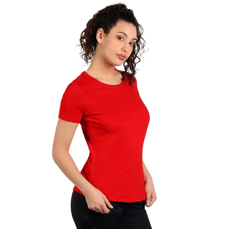 Ženska majica kratkih rukava • Sirovinski sastav: 100% češljani pamuk • Gramatura: 160 g/m² • Povećana izdržljivost • Ženski kroj • Šivena sa strane • Dupli štepovi • Dodatni štep duž ramena • Ojačan okovratnik sa trakom • Deo TARGET kolekcije • Pogodna za intenzivno nošenje i često pranje • Oeko-Tex sertifikat • Dostupna u muškoj verziji
