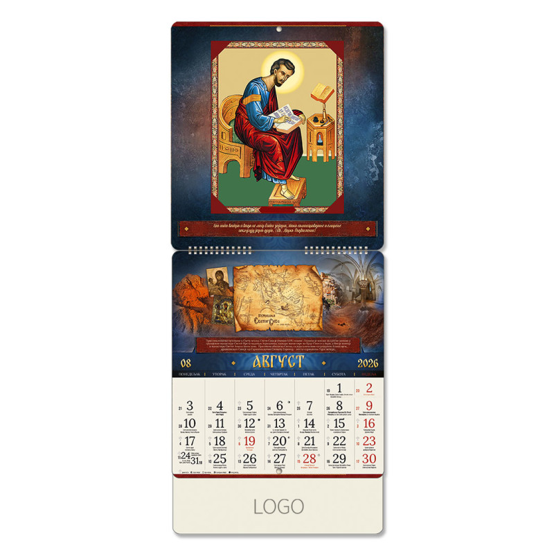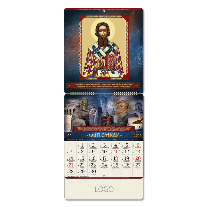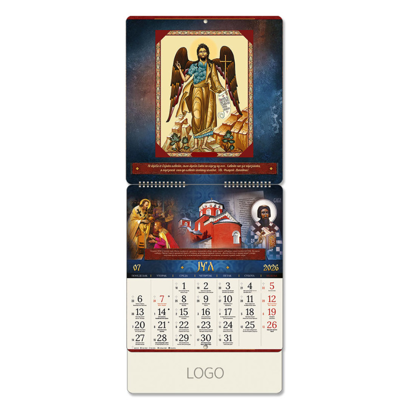 | Zidni kalendar | 15 listova, mesečni, sa zlatotiskom |
