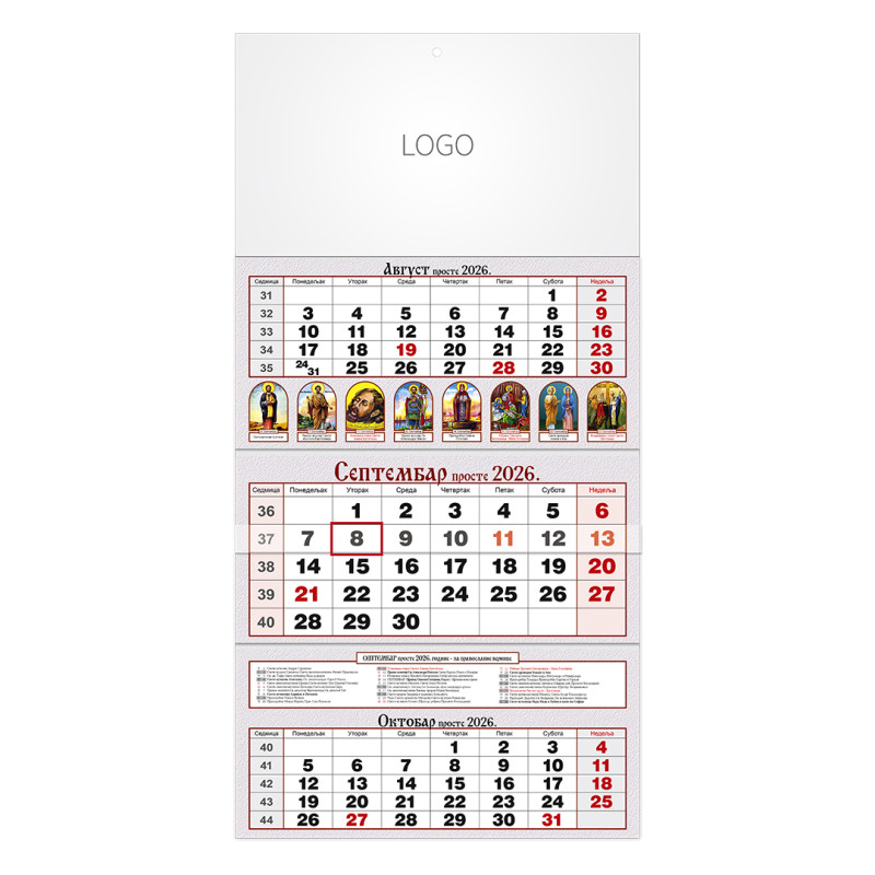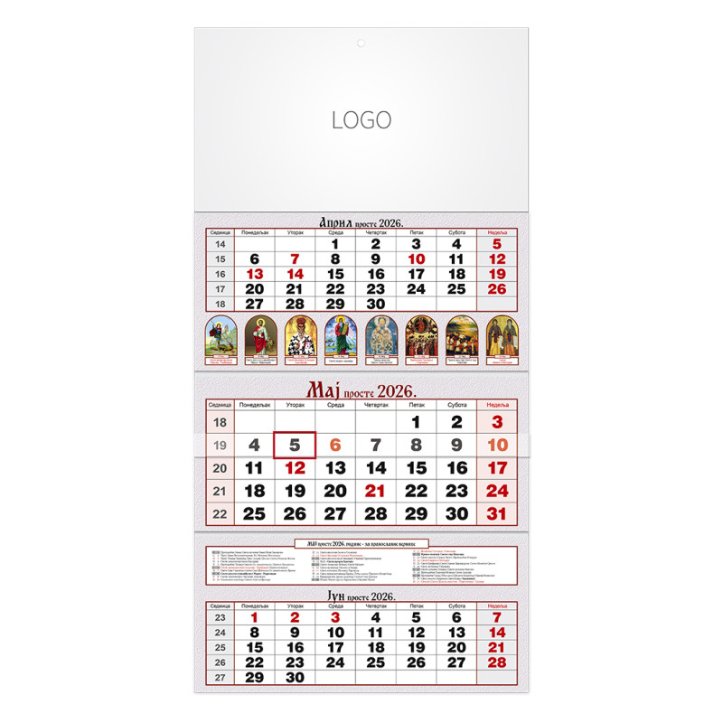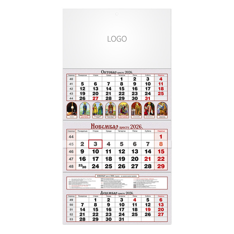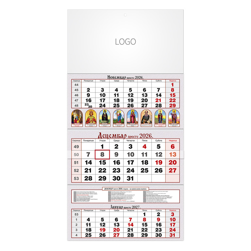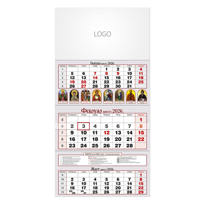 | Zidni kalendar | 3 x 12 listova, tromesečni |