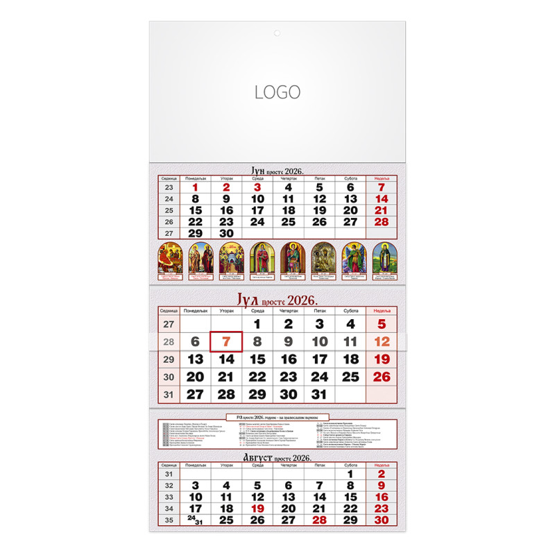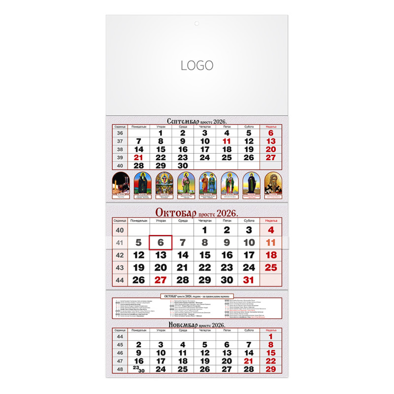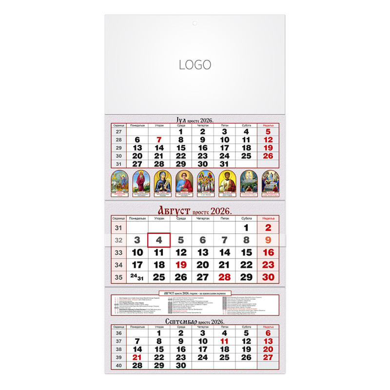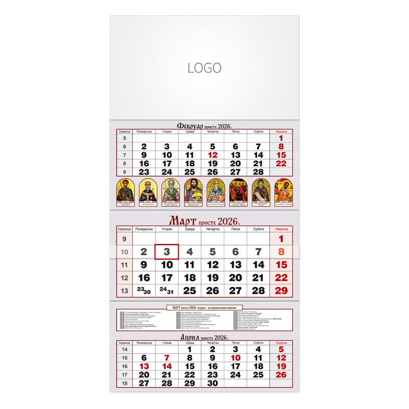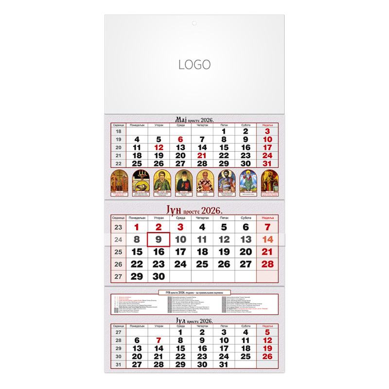 | Zidni kalendar | 3 x 12 listova, tromesečni |