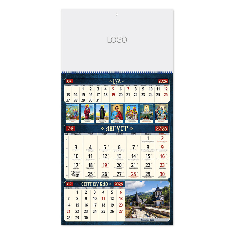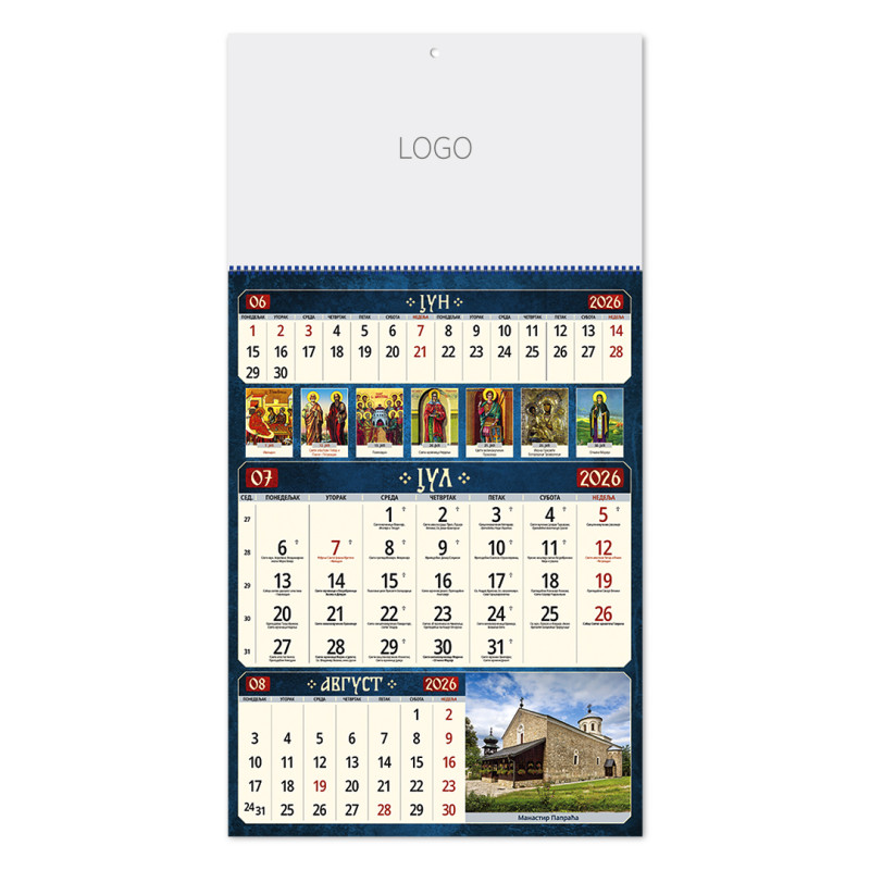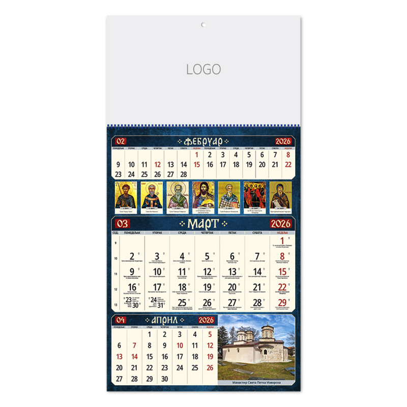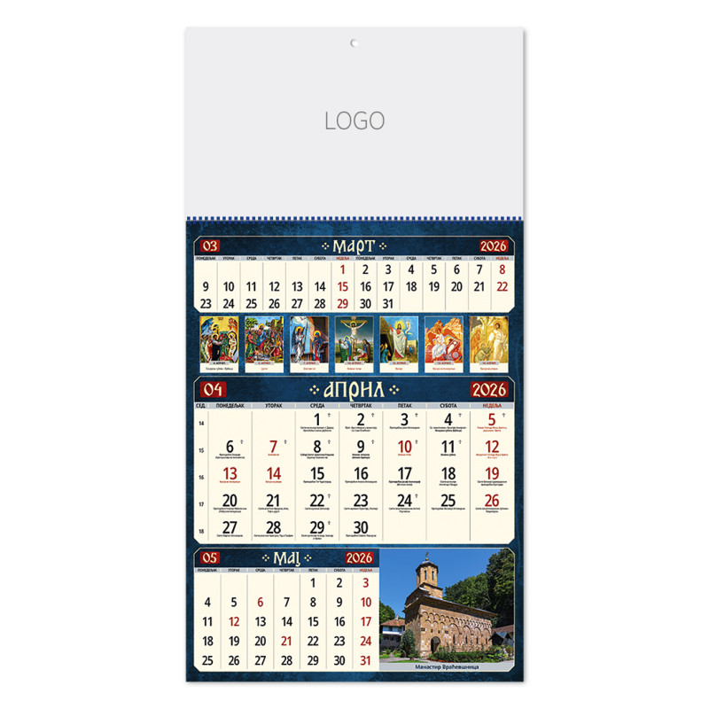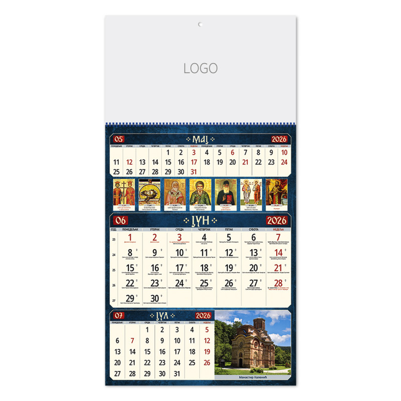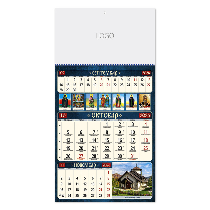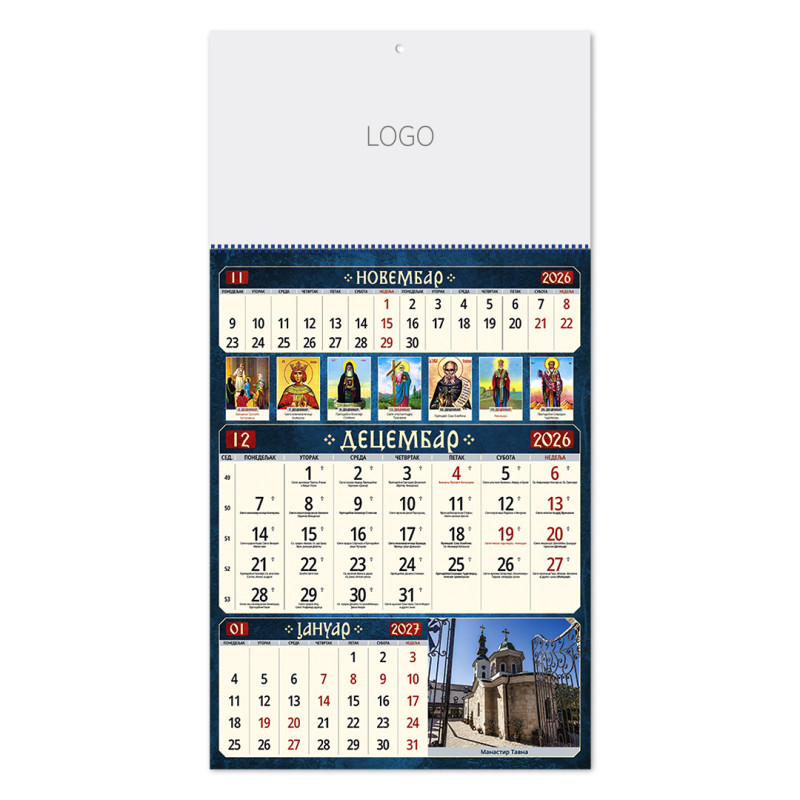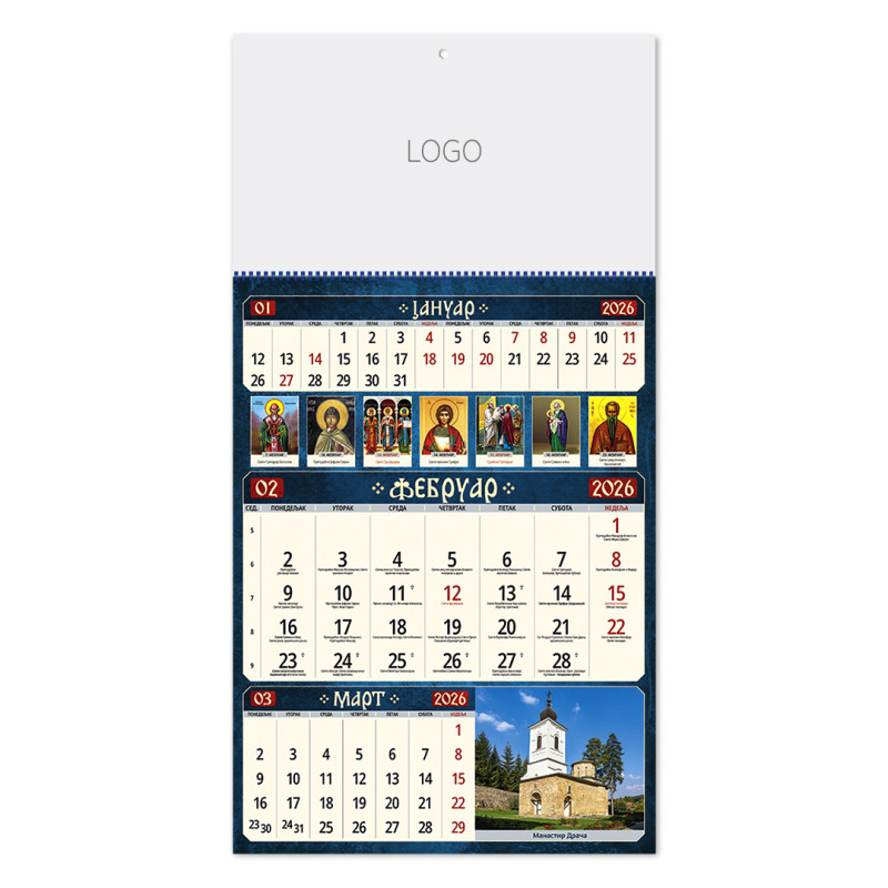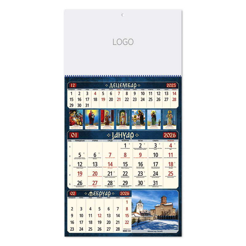 | Zidni kalendar | 12 listova, mesečni |