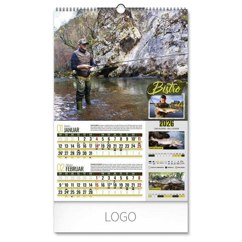 Zidni kalendar: 13 listova, mesečni, sa zlatotiskom na predlistu