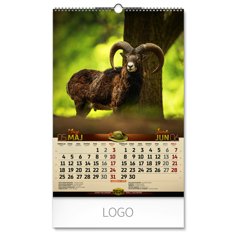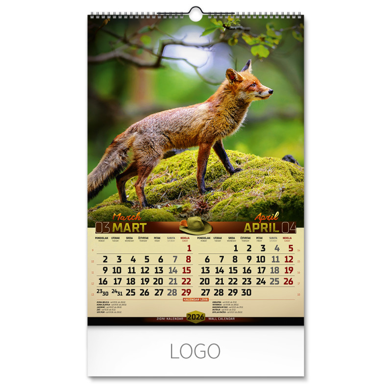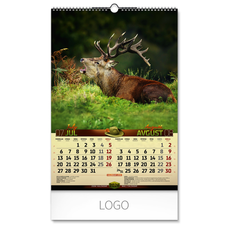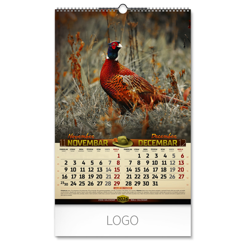 Zidni kalendar: 13 listova, mesečni, sa zlatotiskom na predlistu