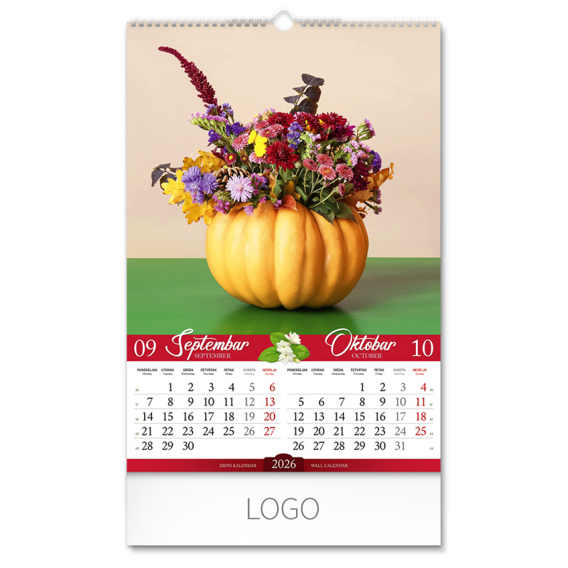 Zidni kalendar: 13 listova, mesečni, sa zlatotiskom na predlistu