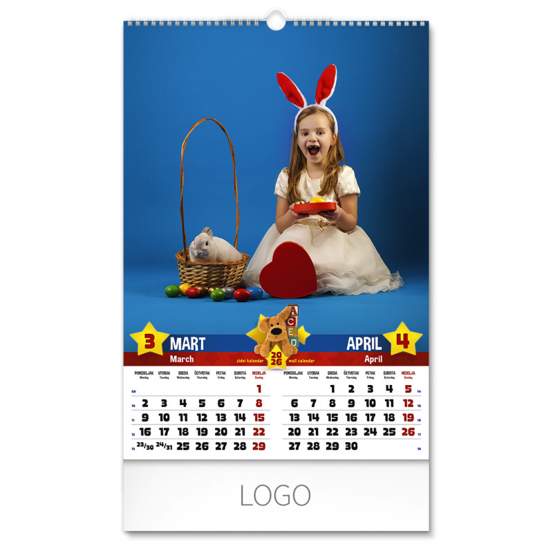 Zidni kalendar: 3 x 12 listova, tromesečni, trodelni