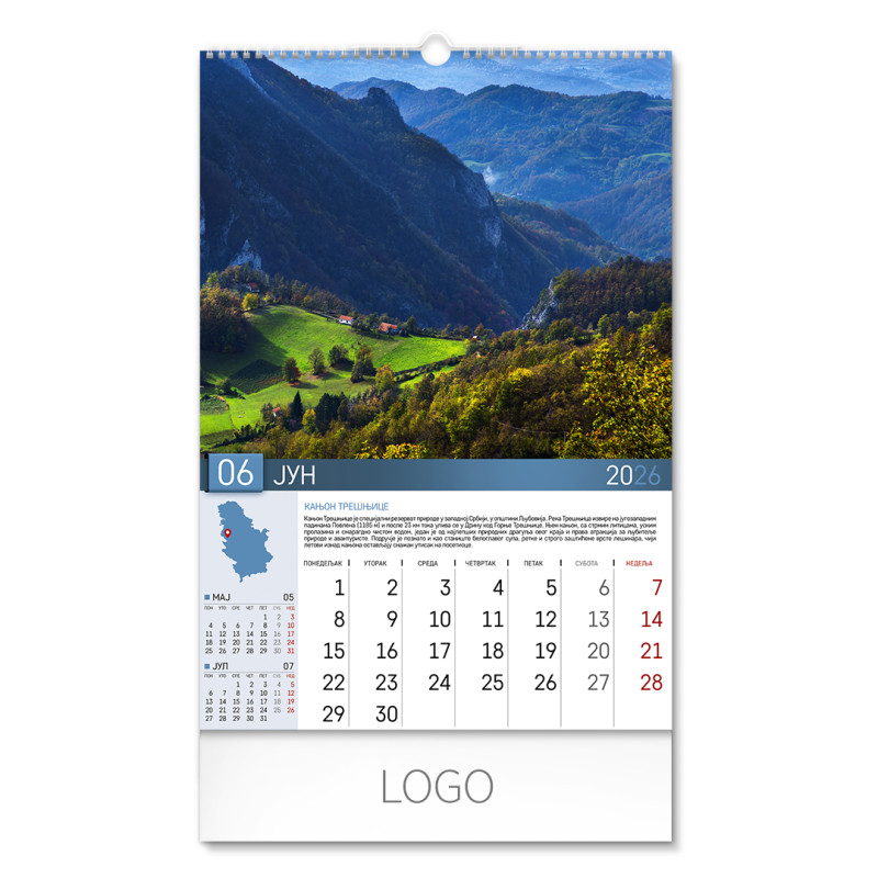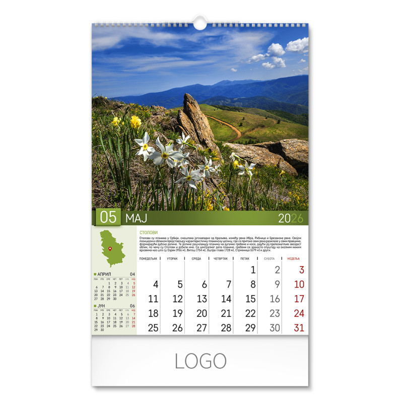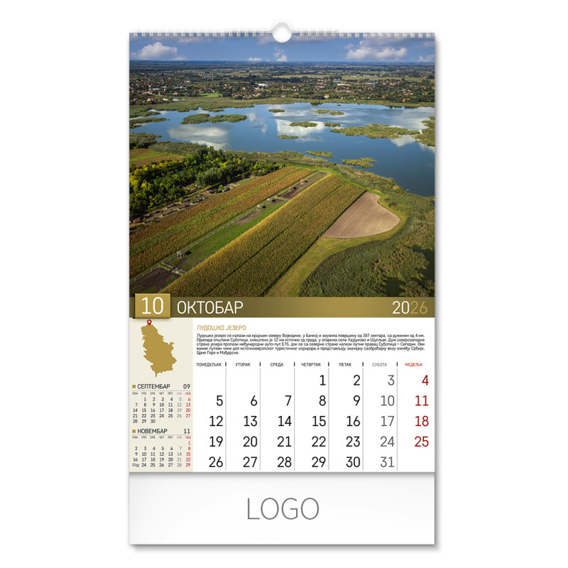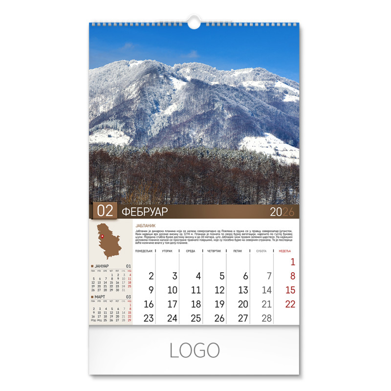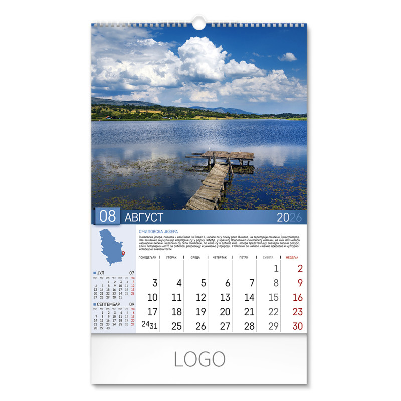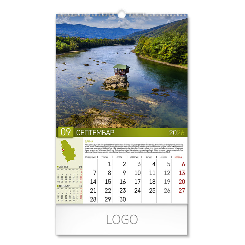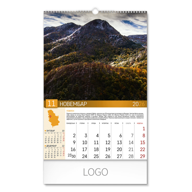 Zidni kalendar: 13 listova, mesečni, sa zlatotiskom na predlistu