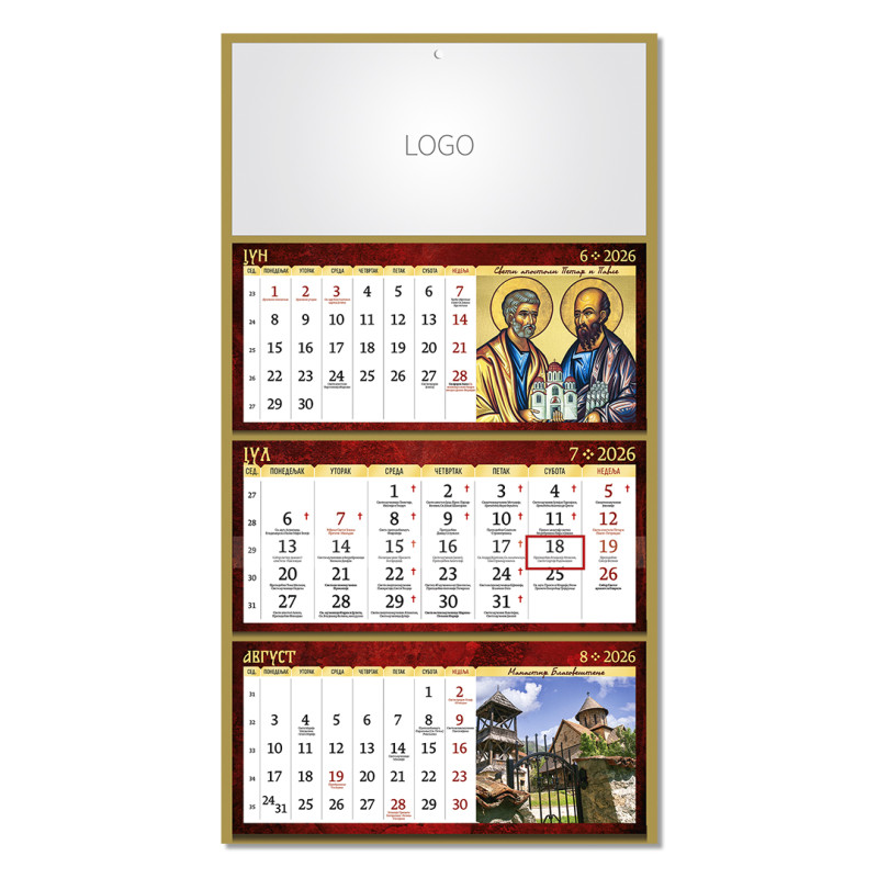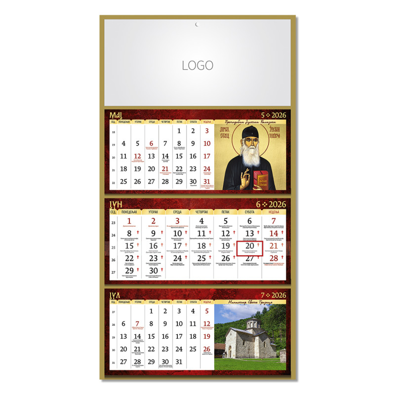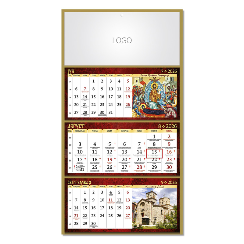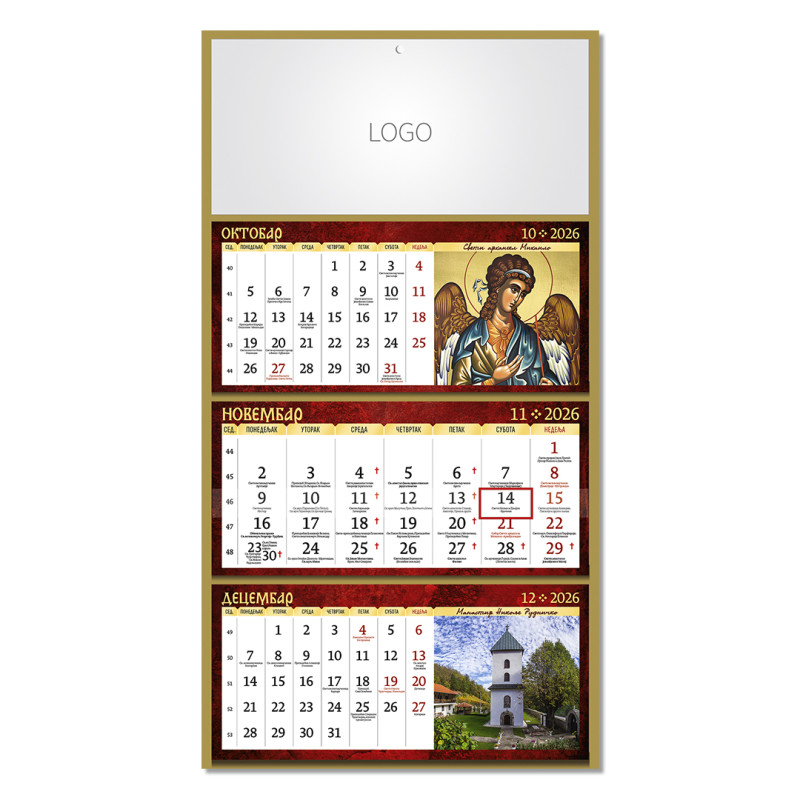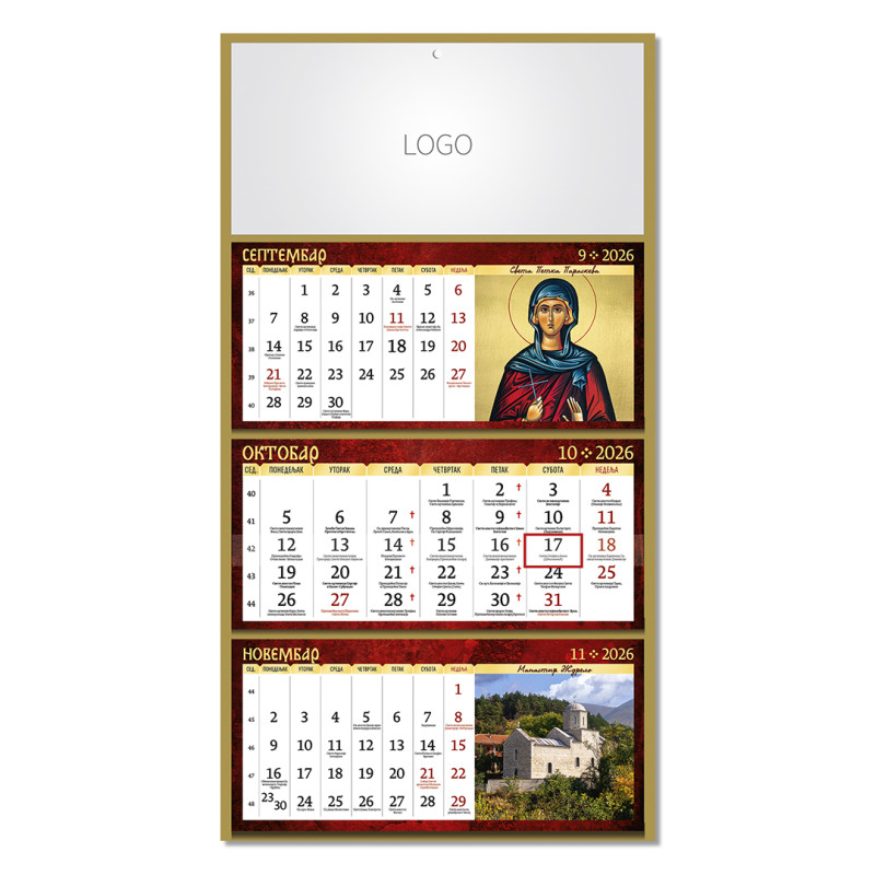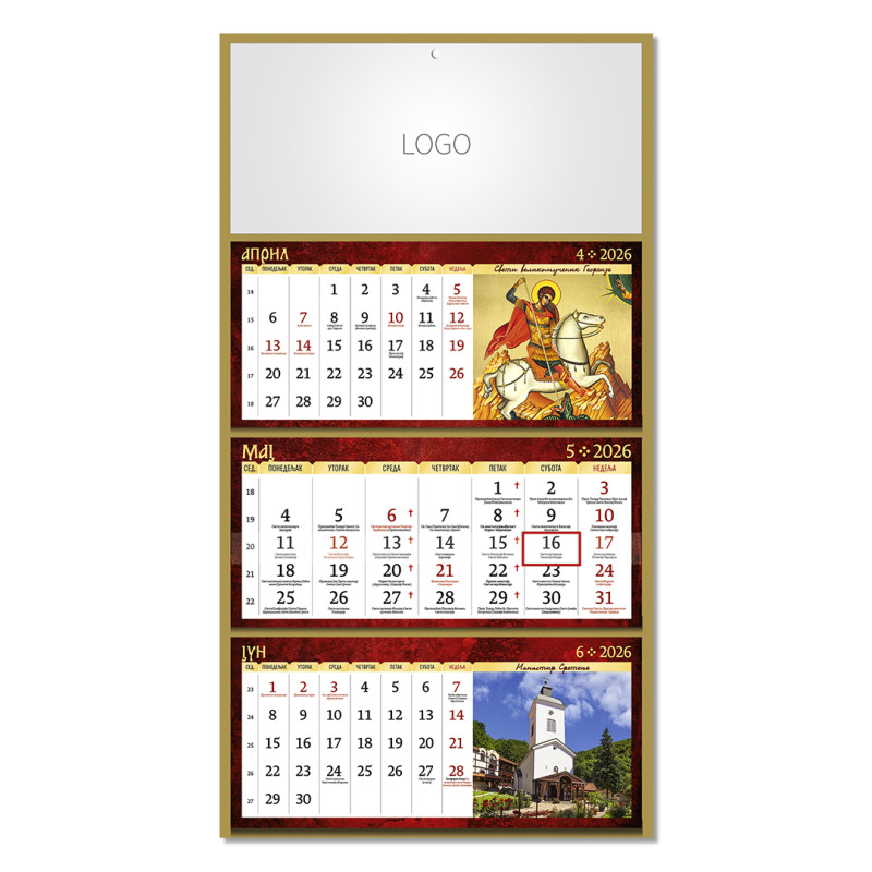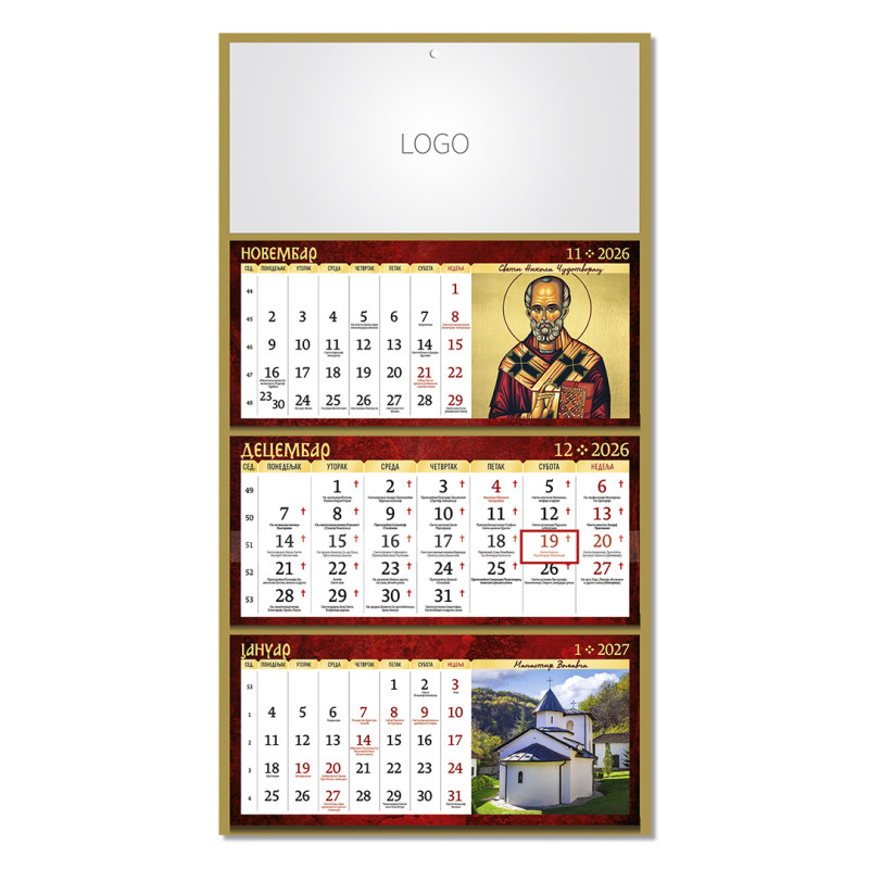 | Zidni kalendar | 3 x 12 listova, tromesečni, trodelni |